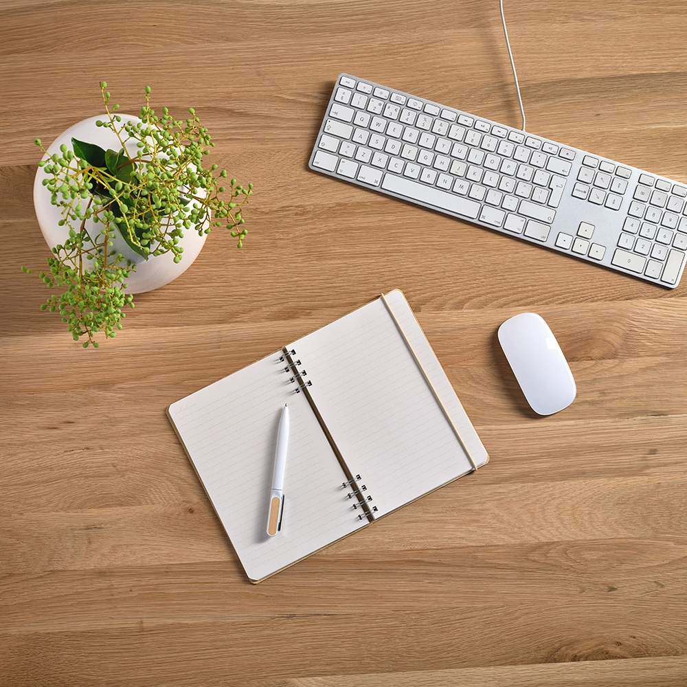 Тщательно изготовленный с обложкой из бамбука, наш блокнот формата A5 выделяется на фоне других. Он содержит 196 переработанных точечных страниц плотностью 70 г/м², тонкую вертикальную резинку и уникальные спирали, разработанные на корешке, что придает ему функциональную элегантность. Этот блокнот сочетает в себе практичность и очарование.