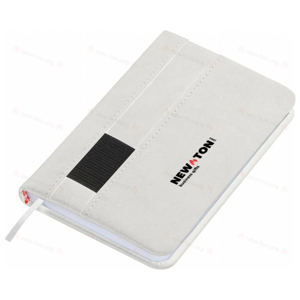 Блокнот А6 в решетку, 160 страниц, имеет закладку и петлью для ручки на обложке.