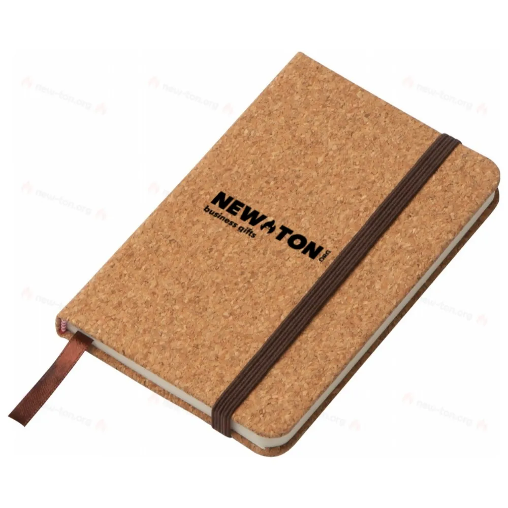 Блокнот формата А6 в линиях (160 страниц) с обложкой из пробки и резиновой лентой для закрытия. Логотип может быть размещен непосредственно на продукте.