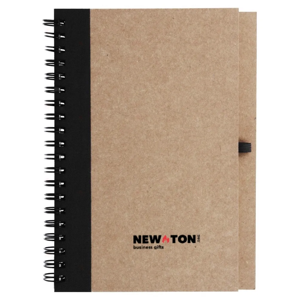 Блокнот из переработанной бумаги с ручкой в цвет. 140 страниц нелинованной переработанной бумаги (70 листов). Нажимная шариковая ручка из переработанного картона и биоразлагаемого пластика. Синие чернила. Эластичный держатель для ручки в цвет. FSC MIX CREDIT | P7.1 | FSC-C213206