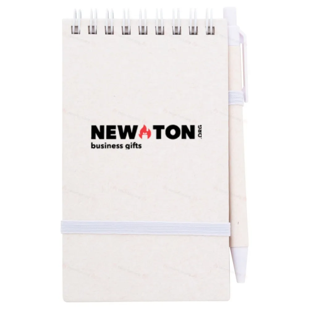 Блокнот на спирали из переработанной бумаги из молочных картонов с твердой обложкой и 70 линованными листами. Со спиралью в подходящем цвете, резиновым ремешком и держателем для ручки. В комплекте переработанная бумага из молочных картонов и переработанный пластик ABS для шариковой ручки с синим стержнем. Размер A6.
