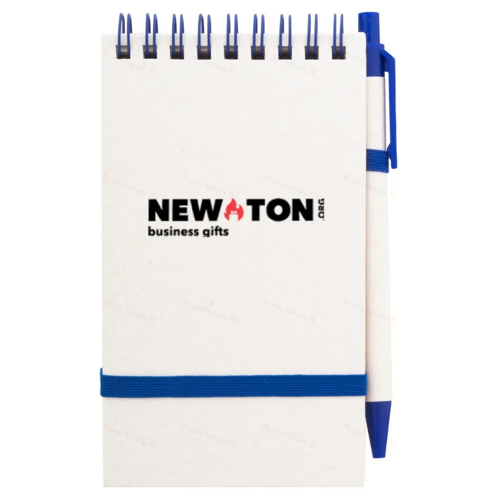 Блокнот на спирали из переработанной бумаги из молочных картонов с твердой обложкой и 70 линованными листами. Со спиралью в подходящем цвете, резиновым ремешком и держателем для ручки. В комплекте переработанная бумага из молочных картонов и переработанный пластик ABS для шариковой ручки с синим стержнем. Размер A6.