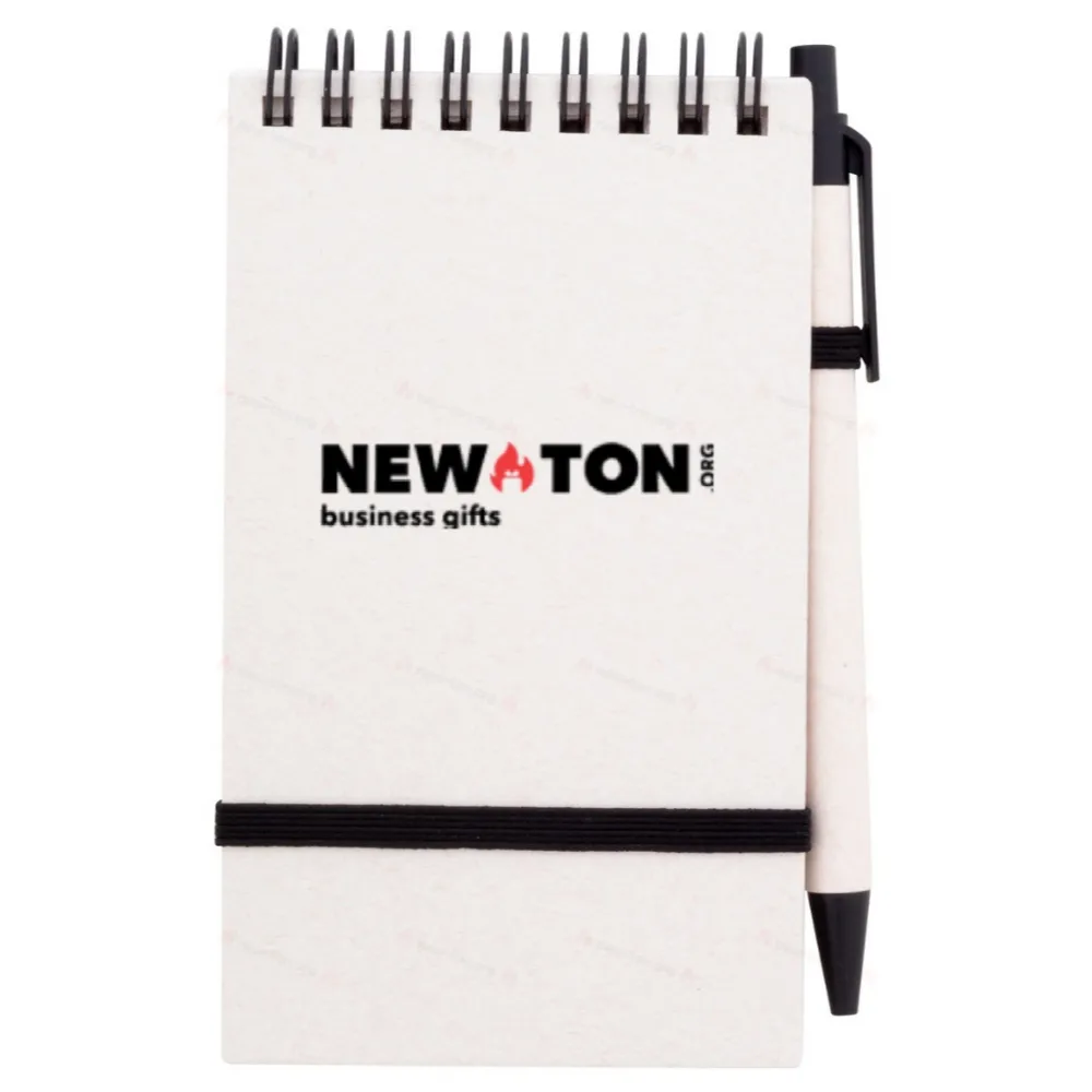 Блокнот на спирали из переработанной бумаги из молочных картонов с твердой обложкой и 70 линованными листами. Со спиралью в подходящем цвете, резиновым ремешком и держателем для ручки. В комплекте переработанная бумага из молочных картонов и переработанный пластик ABS для шариковой ручки с синим стержнем. Размер A6.