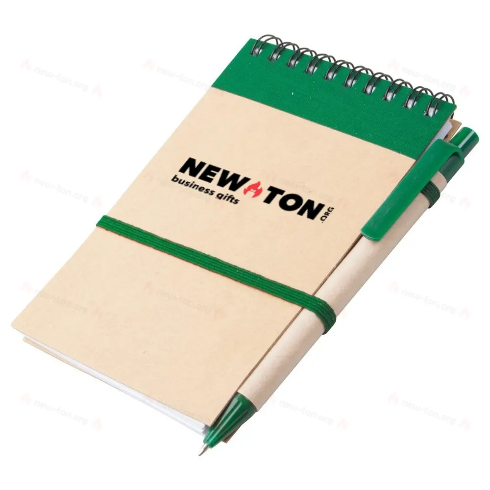 Переработанная бумага, спиральный блокнот с 70 линованными листами. С шариковой ручкой из переработанной бумаги с синим стержнем.