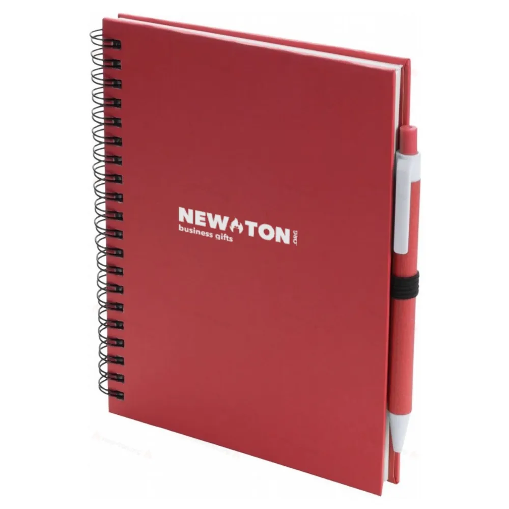 Спиральный блокнот в картонной коробке с 70 чистыми листами и шариковая ручка из переработанной бумаги соответствующего цвета с синим стержнем A5.