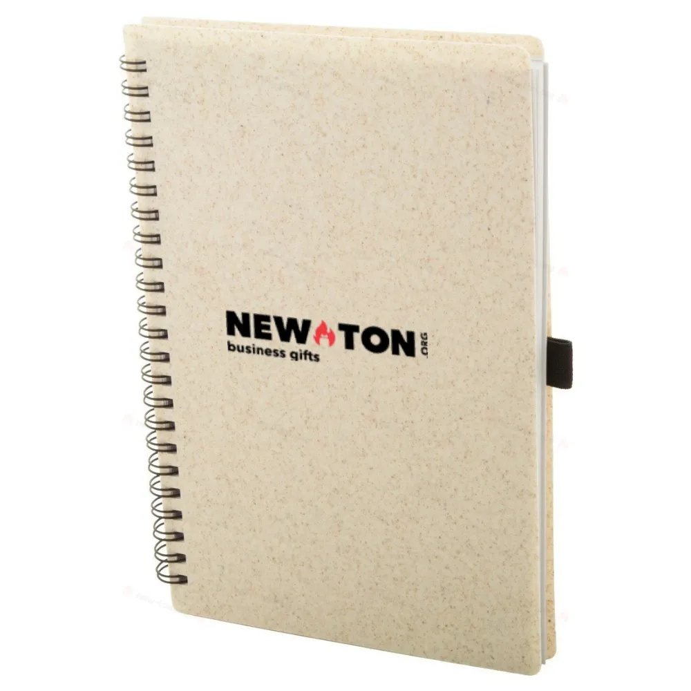Экологический блокнот с обложкой из пластика, изготовленного из пшеничной соломы, с 70 линованными листами из переработанной бумаги и держателем для ручки, размером А5.