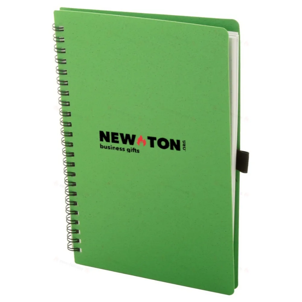Экологический блокнот с обложкой из пластика, изготовленного из пшеничной соломы, с 70 линованными листами из переработанной бумаги и держателем для ручки, размером А5.