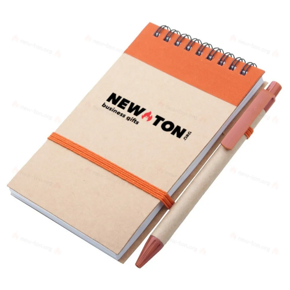 Переработанная бумага, спиральная тетрадь с 70 линейными листами. В комплекте переработанная бумажная шариковая ручка с синим заправочным стержнем.