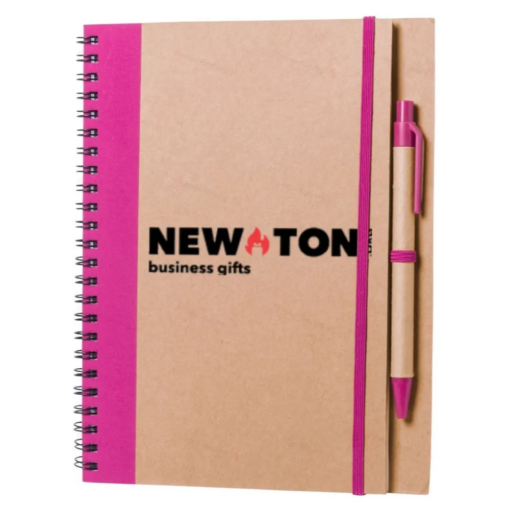 Переработанная бумага, блокнот на спирали с 60 пустыми листами и шариковой ручкой.