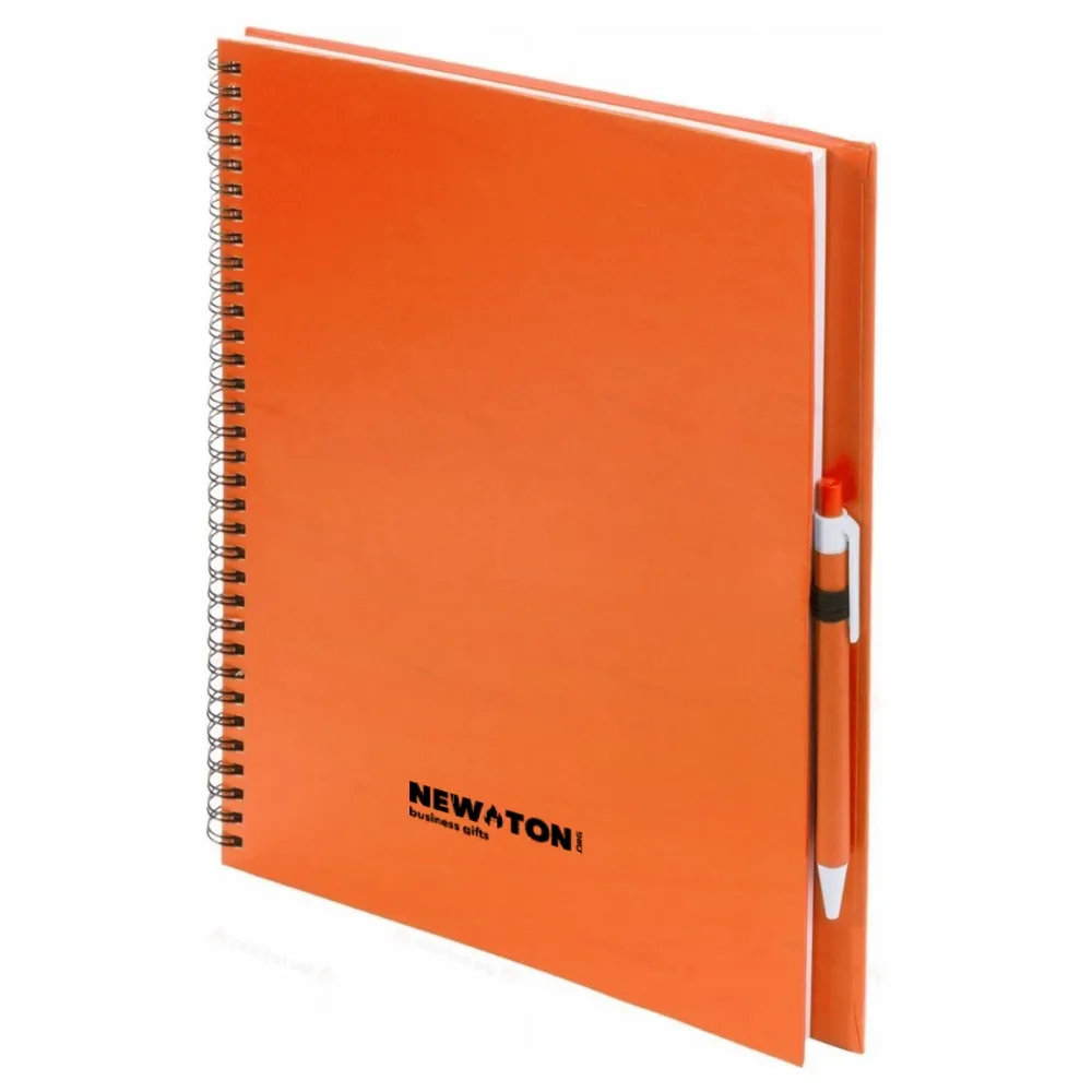 Спиральный блокнот в картонной обложке с 80 пустыми листами и шариковая ручка из переработанной бумаги с синим стержнем, формата А4.