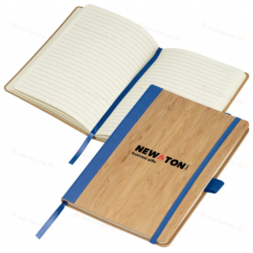 Блокнот формата А5 из бамбука и переработанного полиэстера. В блокноте 192 страницы в линейку, застежка на резинку и петля для ручки.