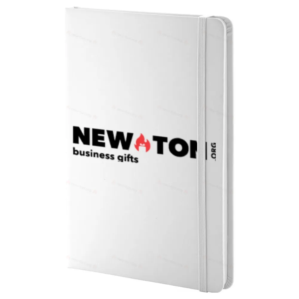 Блокнот с переплетом из переработанной искусственной кожи, содержащий 100 чистых листов из переработанной бумаги. Соответствующая закладка и резинка в том же цвете. Размер A5.