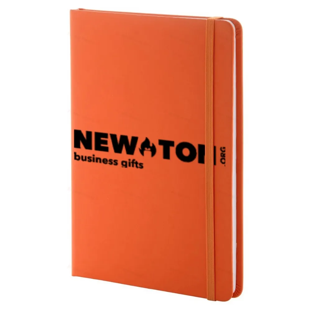 Блокнот с переплетом из переработанной искусственной кожи, содержащий 100 чистых листов из переработанной бумаги. Соответствующая закладка и резинка в том же цвете. Размер A5.