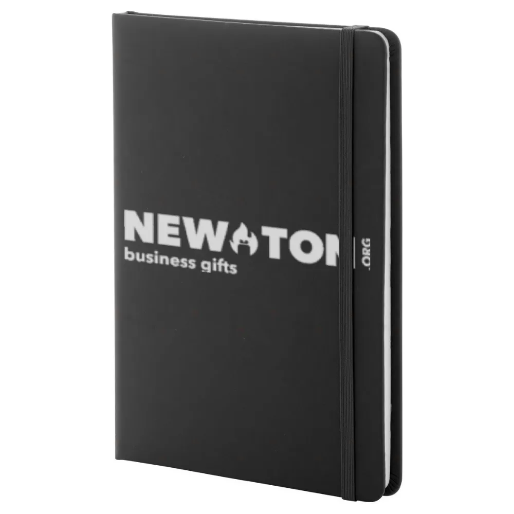 Блокнот с переплетом из переработанной искусственной кожи, содержащий 100 чистых листов из переработанной бумаги. Соответствующая закладка и резинка в том же цвете. Размер A5.