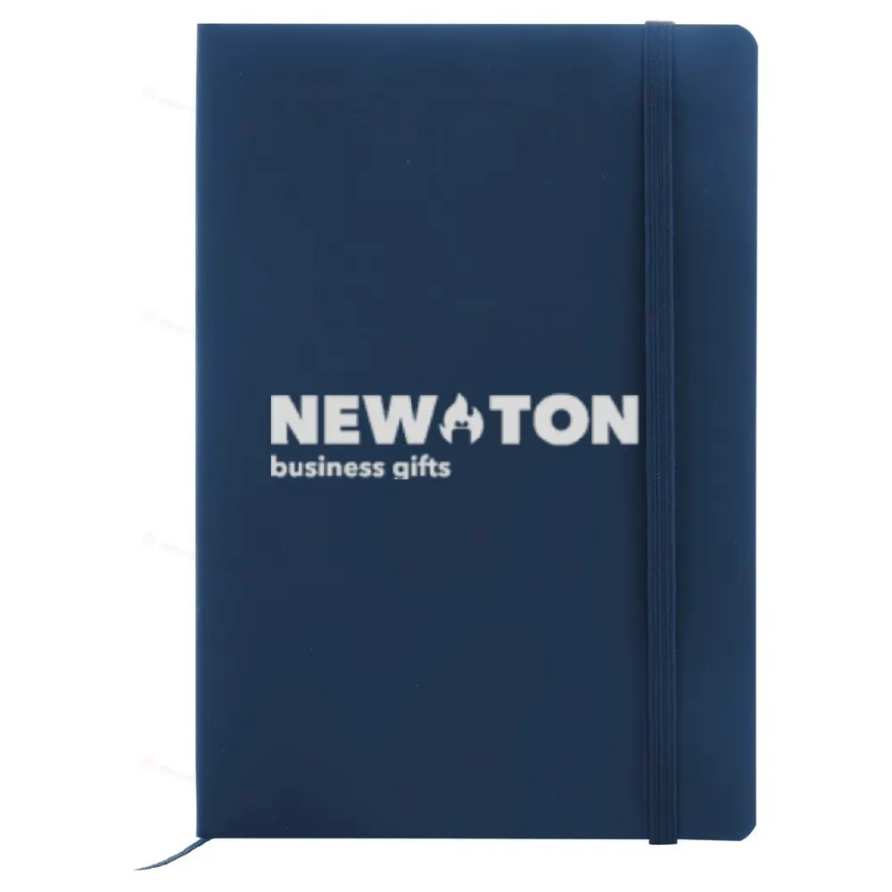 Блокнот с мягкой обложкой из переработанной кожи PU с 80 линованными листами из переработанной бумаги. С закладкой и резинкой в подходящем цвете. Размер A5.