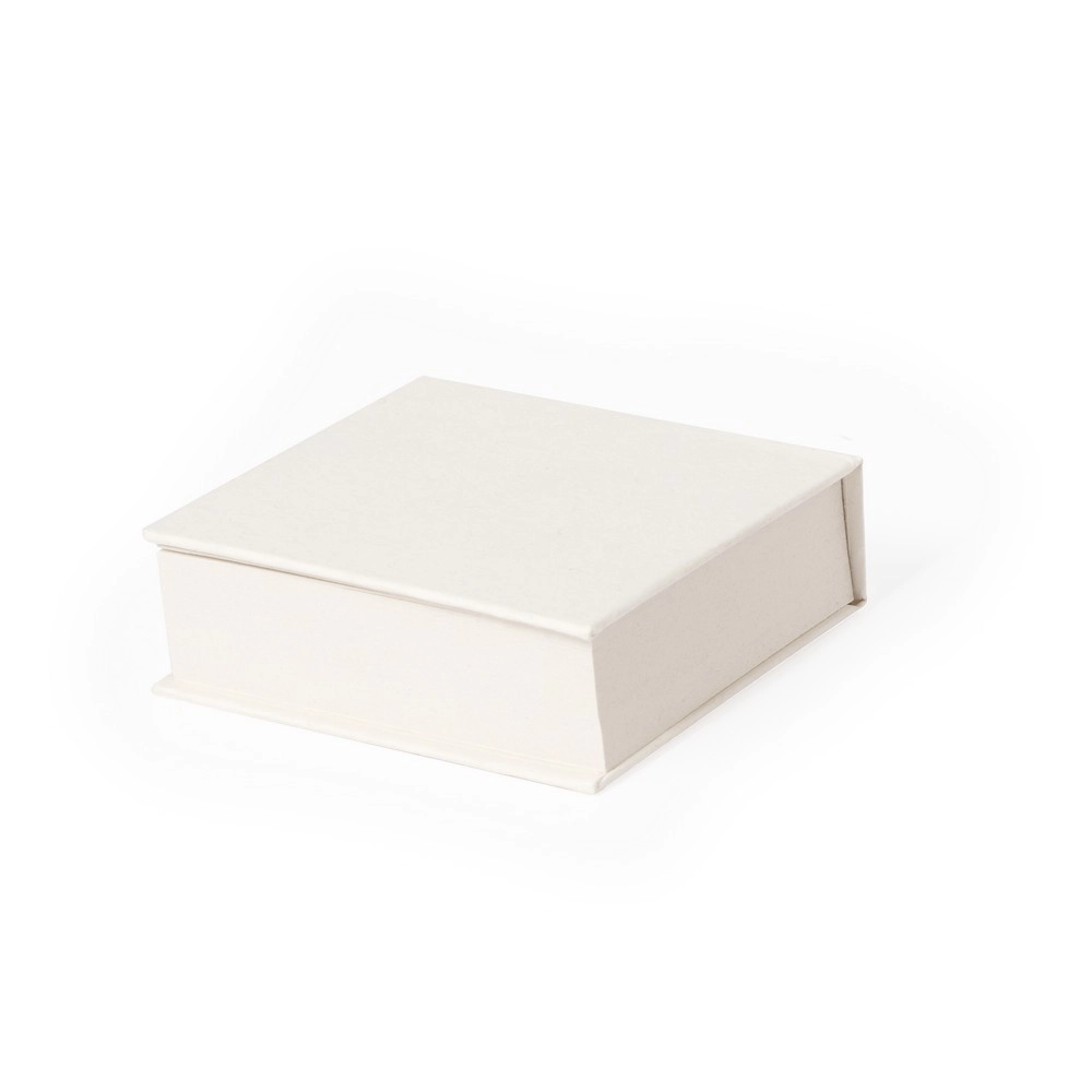 Блокнот (200 пустых листов) изготовлен из переработанных молочных коробок, формата 7,5 х 8 см, с твердой обложкой.