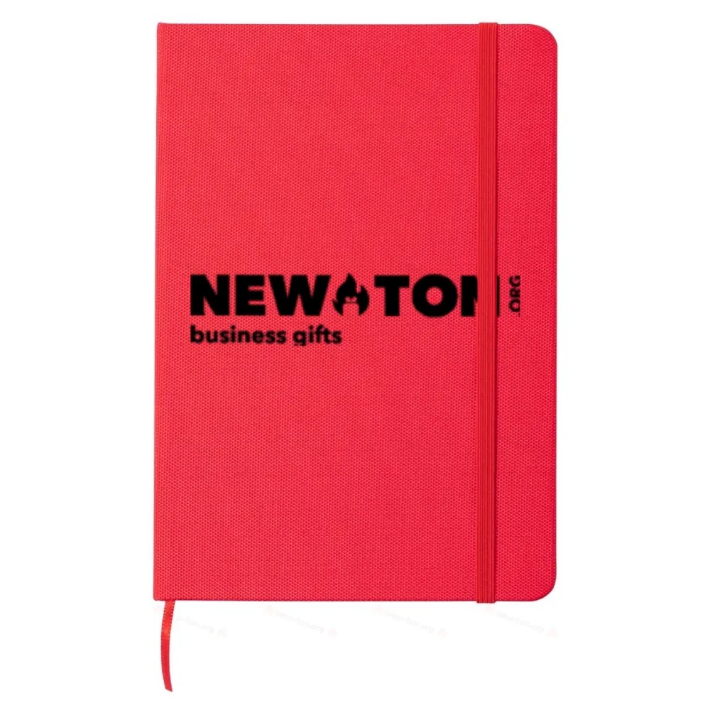 Блокнот с покрытием из полиэстера RPET с 80 линованными листами, закладкой и резиновым ремешком. Размер А5.