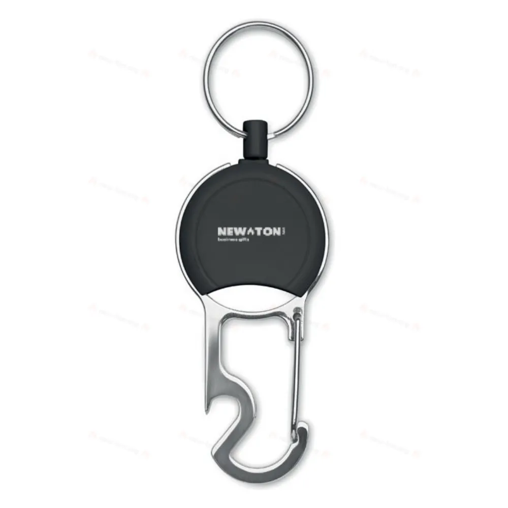 Выдвижной держатель для бейджей из пластика с клипом, брелком для ключей и открывалкой для бутылок.