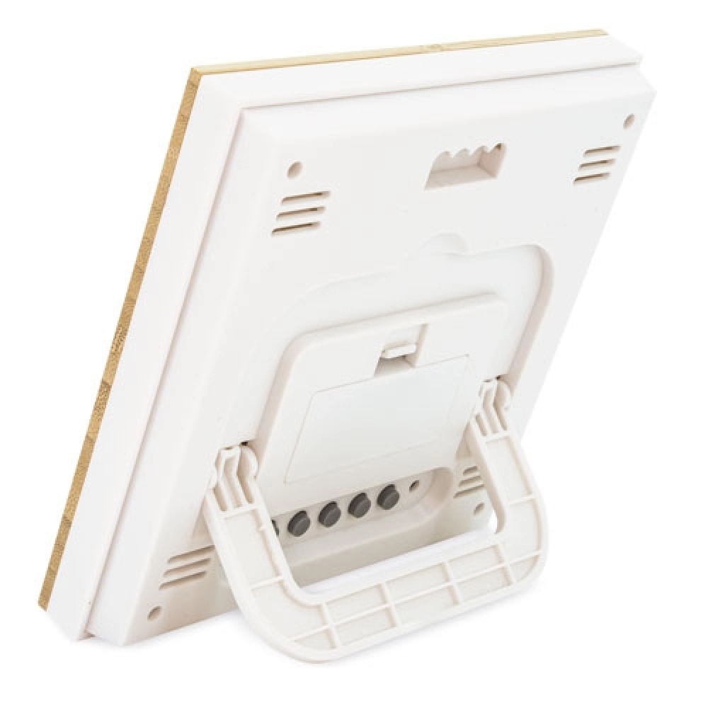 Изготовлен из натурального бамбука, идеально подходит для офисов, компьютерных комнат, домов, теплиц и т.д. Максимальная/Минимальная температура Максимальная/Минимальная влажность Температурная сигнализация Время Календарь Индикатор уровня комфорта С подставкой для стола и возможностью крепления на стену Работает от 2 батареек AAA (в комплект не входят)