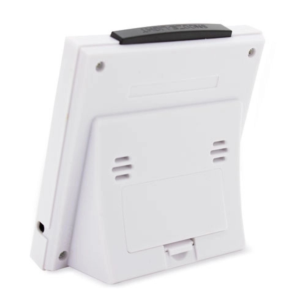 Полная метеостанция с часами, календарем и будильником. На ее экране вы сможете увидеть с помощью простого рисунка, солнечно ли, идет ли дождь, облачно ли... Она показывает, помимо текущей температуры и влажности, максимальные и минимальные значения, зафиксированные за день. На верхней части устройства находится большая кнопка для легкого отключения будильника.