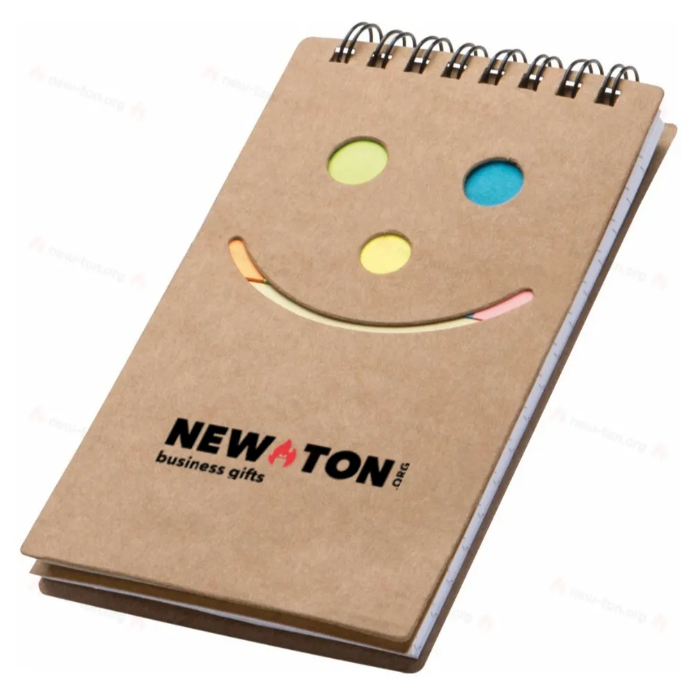 Блокнот с спиралью 50 клетчатых листов и цветными стикерами для маркировки. Вы можете поместить логотип на обложке.