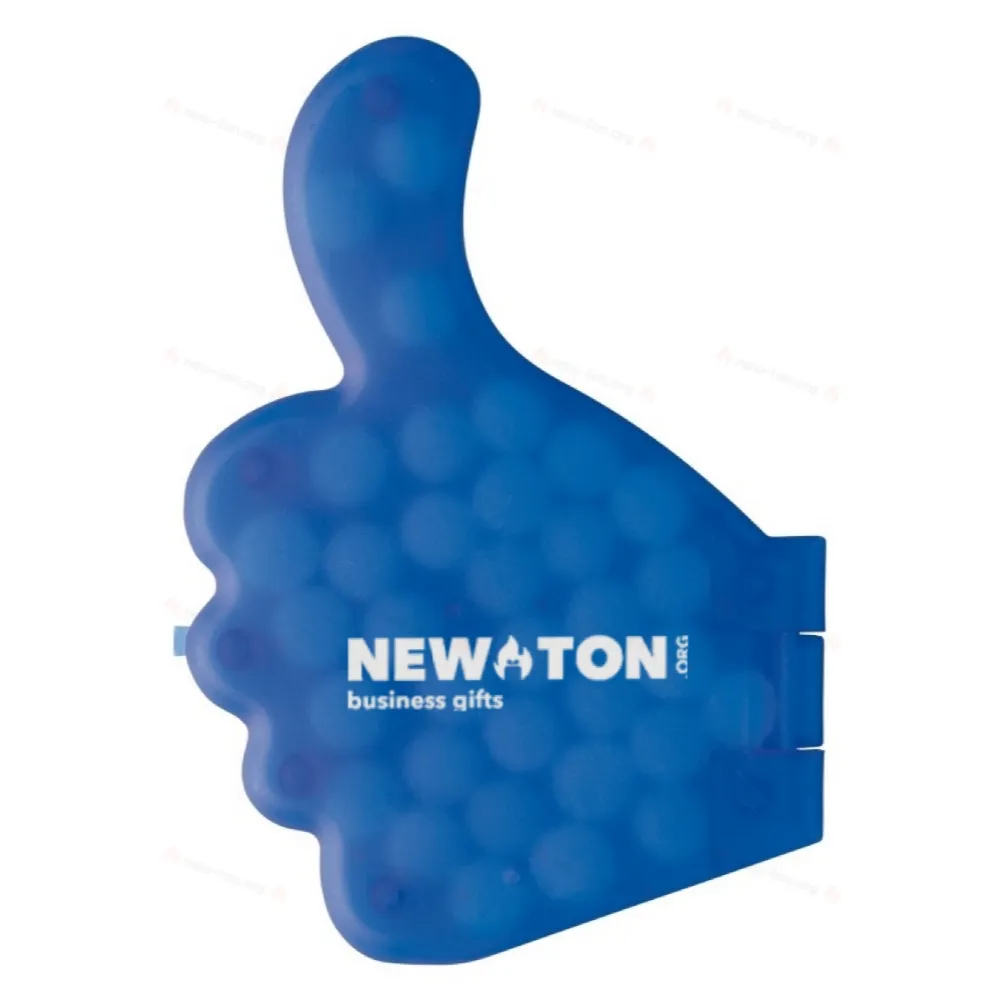 Дозатор мяты перечной в форме большого пальца. Открытие дозатора на запястье. Примерно пять граммов мяты без сахара. Подходит для полноцветной цифровой печати. Недурно!