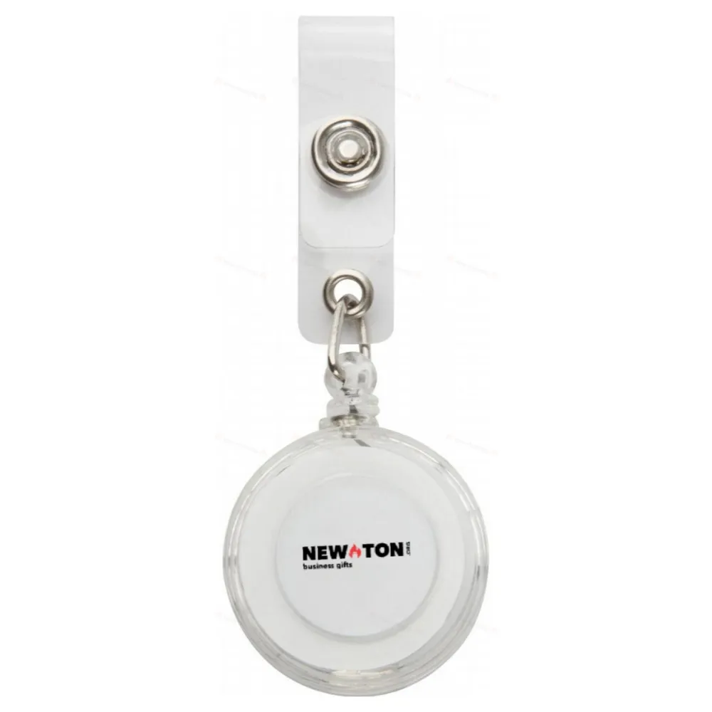 Пластиковый держатель для пропусков с кнопкой, телескопической линией и металлическим зажимом.
