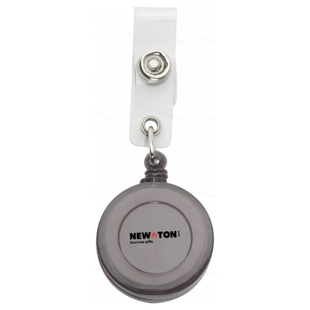 Пластиковый держатель для пропусков с кнопкой, телескопической линией и металлическим зажимом.