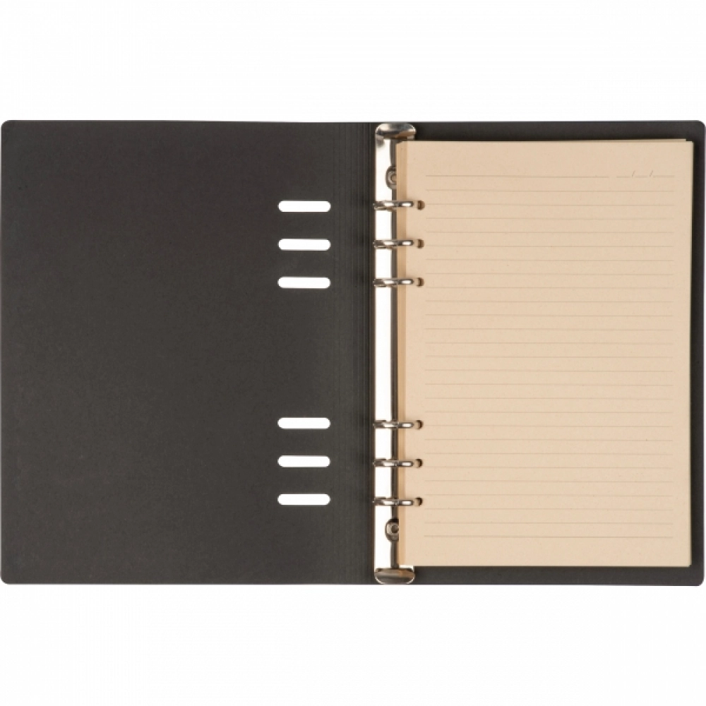 Папка-регистратор формата A5 с обложкой из полиуретана, содержащая 200 страниц в линейку из сахарного тростника и небольшую петлю для шариковой ручки с эластичной лентой.