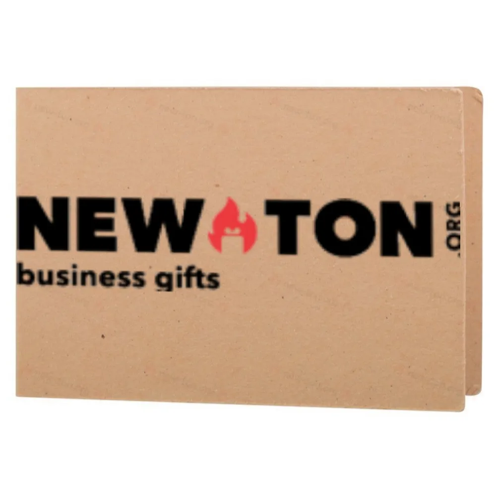 Изготовленные на заказ закладки для страниц, покрытые переработанной крафт-бумагой. Включают 100 пластиковых закладок в пяти различных цветах (44×12 мм). Цена включает полноцветную печать на внешней обложке. Минимальный заказ: 100 шт.