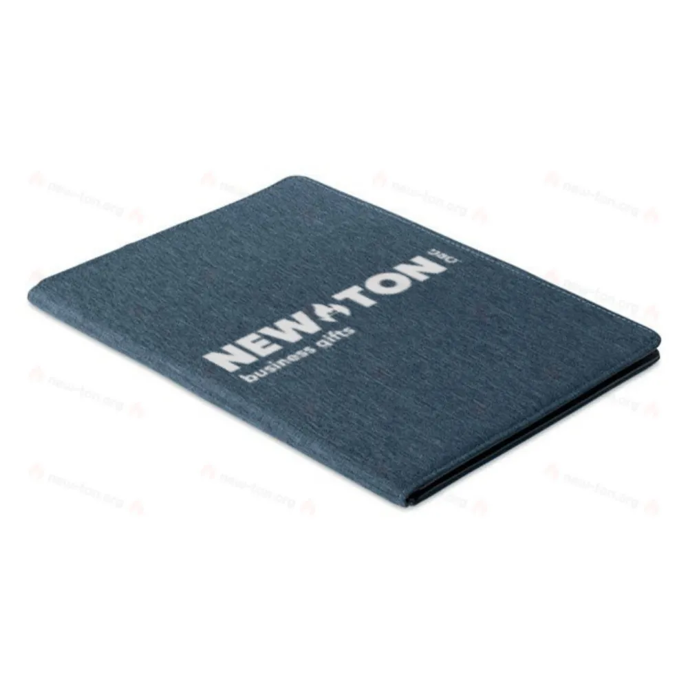 Папка формата A4 из двухцветного материала 300D RPET. Содержит внутренние отделения и петлю для ручки. В комплект входит разлинованный блокнот на 20 листов.