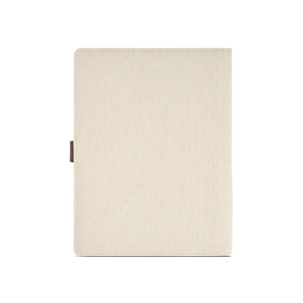 Раскройте потенциал организации с нашей папкой формата А4 из переработанного хлопкового полотна. Защелка из переработанного ПУ надежно сохранит ваши важные вещи, а карман для планшета, 64 страницы в точку с сертификатом FSC, держатель для ручки и отделения для карт обеспечат функциональность. Все упаковано в индивидуальную коробку из переработанного крафт-картона.