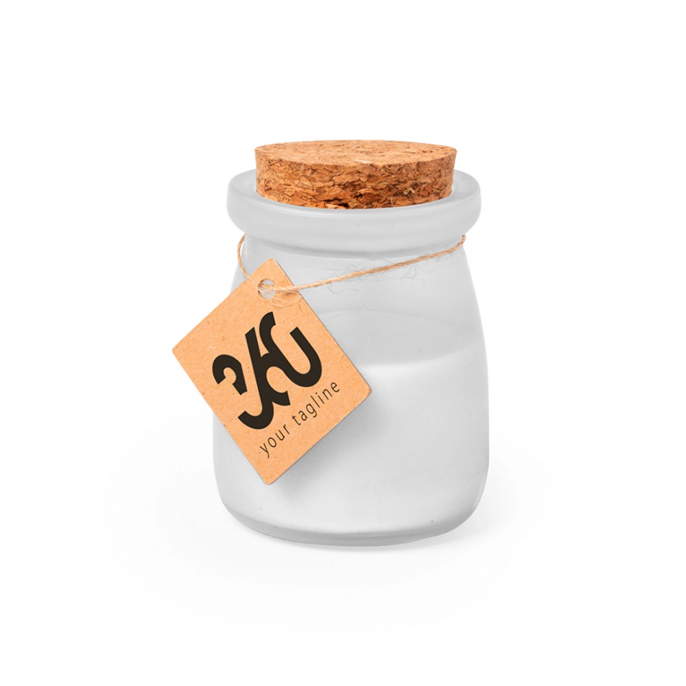Привлекающая внимание свеча в хрустальной банке. С пробковой крышкой и биркой из переработанного картона для сообщений. Выпускается в различных цветах и представлена в индивидуальной белой коробке.