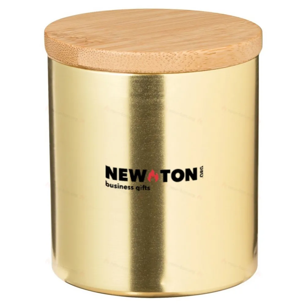 Ароматическая свеча со вкусом ванили в алюминиевом держателе с бамбуковой крышкой.