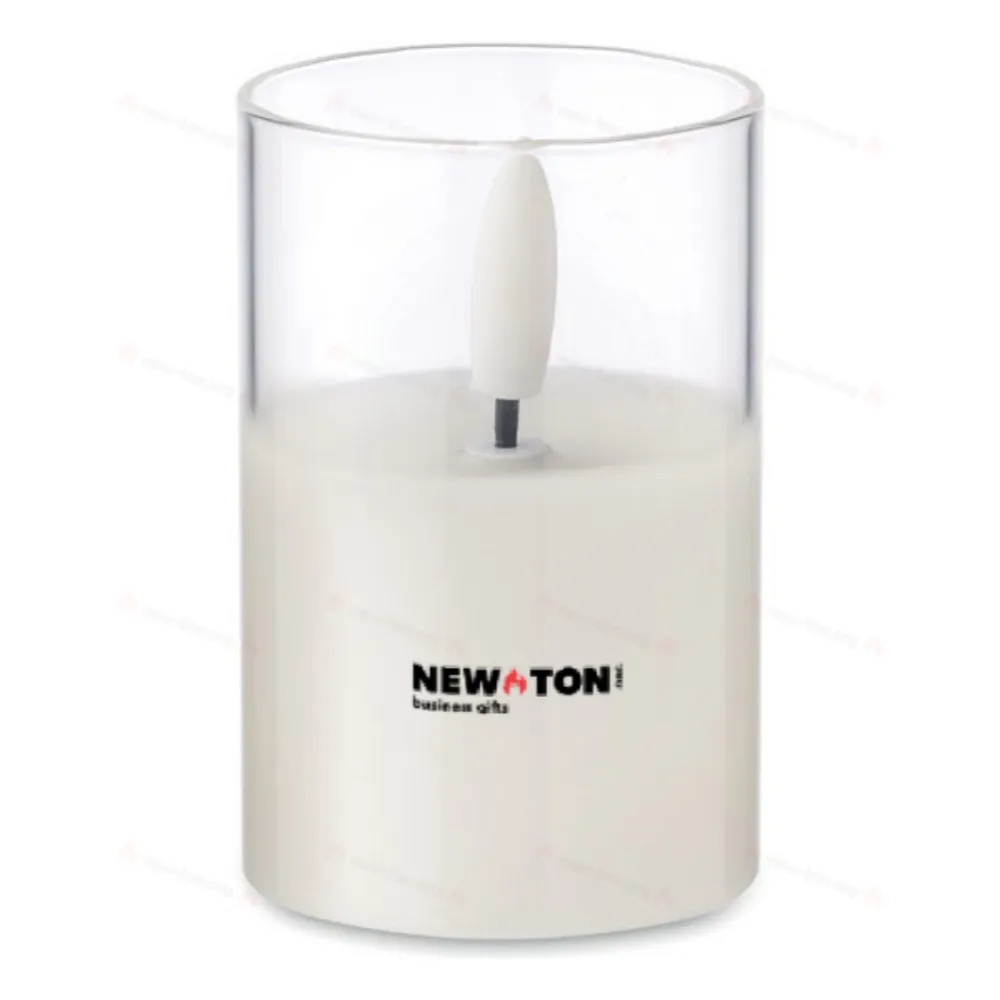 Небольшая светодиодная восковая свеча с эффектом реального пламени в стеклянном подсвечнике. В комплект входит батарейка CR2032.