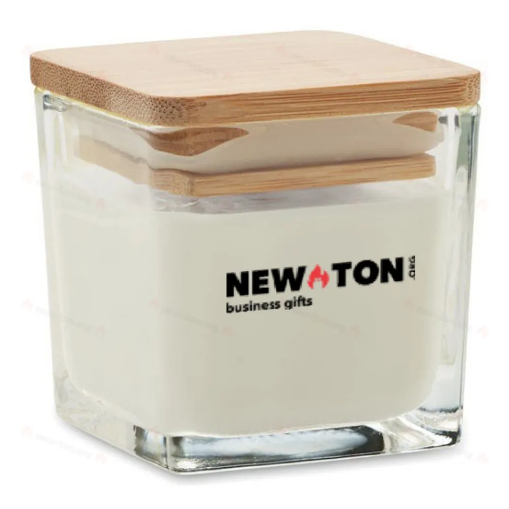 Ароматизированная восковая свеча на растительной основе в квадратном стеклянном стакане с бамбуковой крышкой. 50 гр. Время горения: 8 часов.