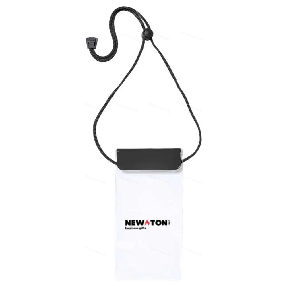 Водонепроницаемый чехол для мобильного телефона с сенсорным экраном и подходящим по цвету шейным ремешком, изготовленный из ПВХ. Подходит для мобильных телефонов с экраном до 6,5 дюймов.