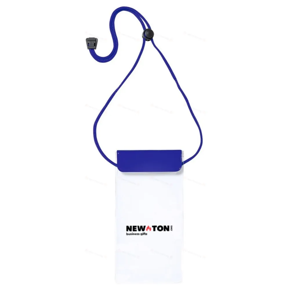 Водонепроницаемый чехол для мобильного телефона с сенсорным экраном и подходящим по цвету шейным ремешком, изготовленный из ПВХ. Подходит для мобильных телефонов с экраном до 6,5 дюймов.