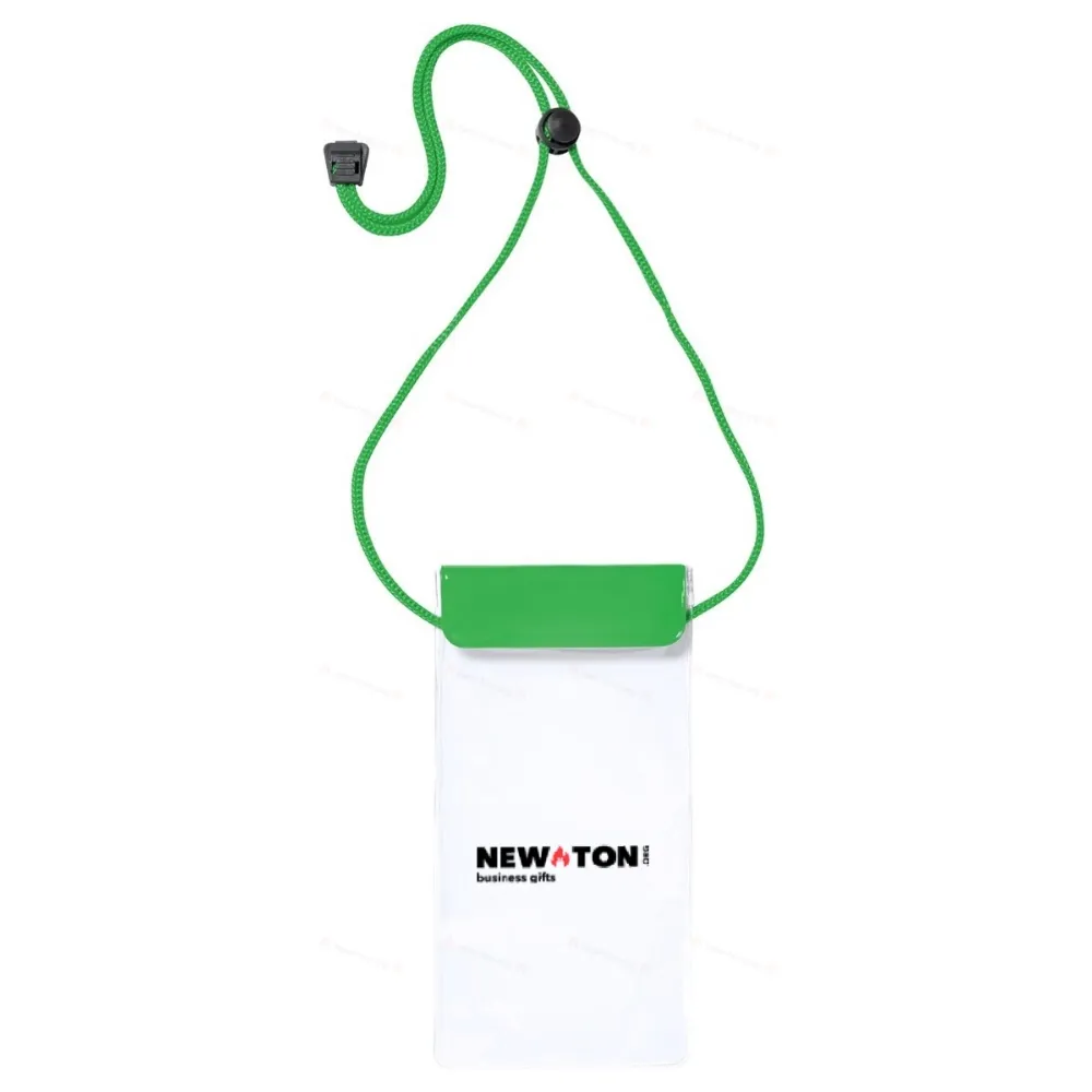 Водонепроницаемый чехол для мобильного телефона с сенсорным экраном и подходящим по цвету шейным ремешком, изготовленный из ПВХ. Подходит для мобильных телефонов с экраном до 6,5 дюймов.