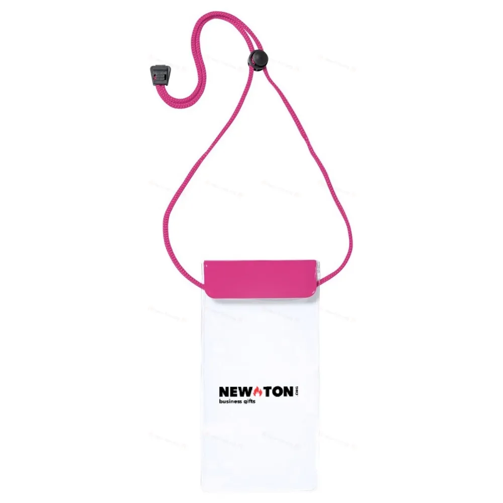 Водонепроницаемый чехол для мобильного телефона с сенсорным экраном и подходящим по цвету шейным ремешком, изготовленный из ПВХ. Подходит для мобильных телефонов с экраном до 6,5 дюймов.