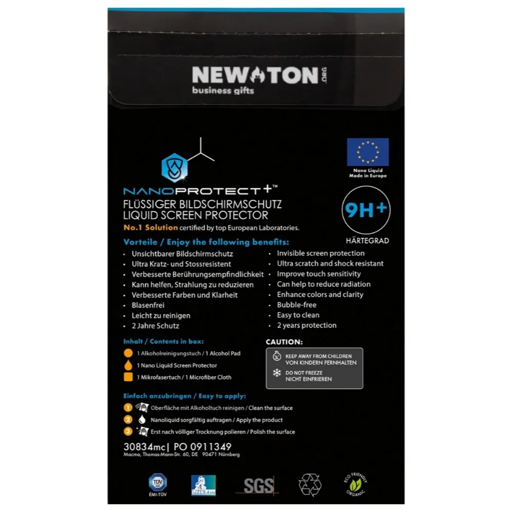 Жидкое защитное стекло для смартфонов, умных часов и планшетов. Жидкое стекло полностью закрывает дисплей и обеспечивает гораздо лучшую защиту чем традиционная пленка. Кроме того, жидкое стекло полностью невидимо. Логотип можно разместить на упаковке.