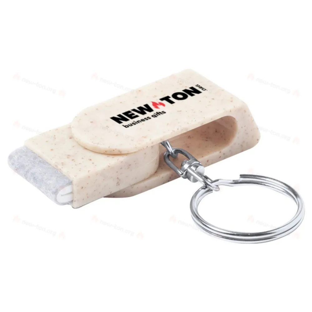 Экологический держатель для мобильного телефона из пшеничной соломы с чистящим экраном и металлическим кольцом для ключей.