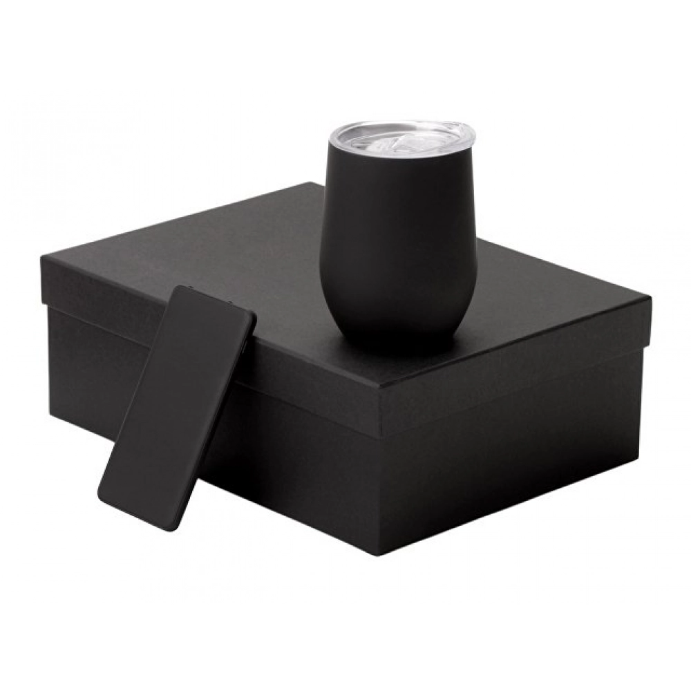 повербанк- пластик с покрытием soft-touch, термокружка- нержавеющая cталь с покрытием soft-touch