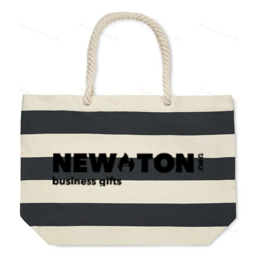 Полосатая пляжная сумка или сумка для покупок из хлопка с ручкой. 220 гр/м².