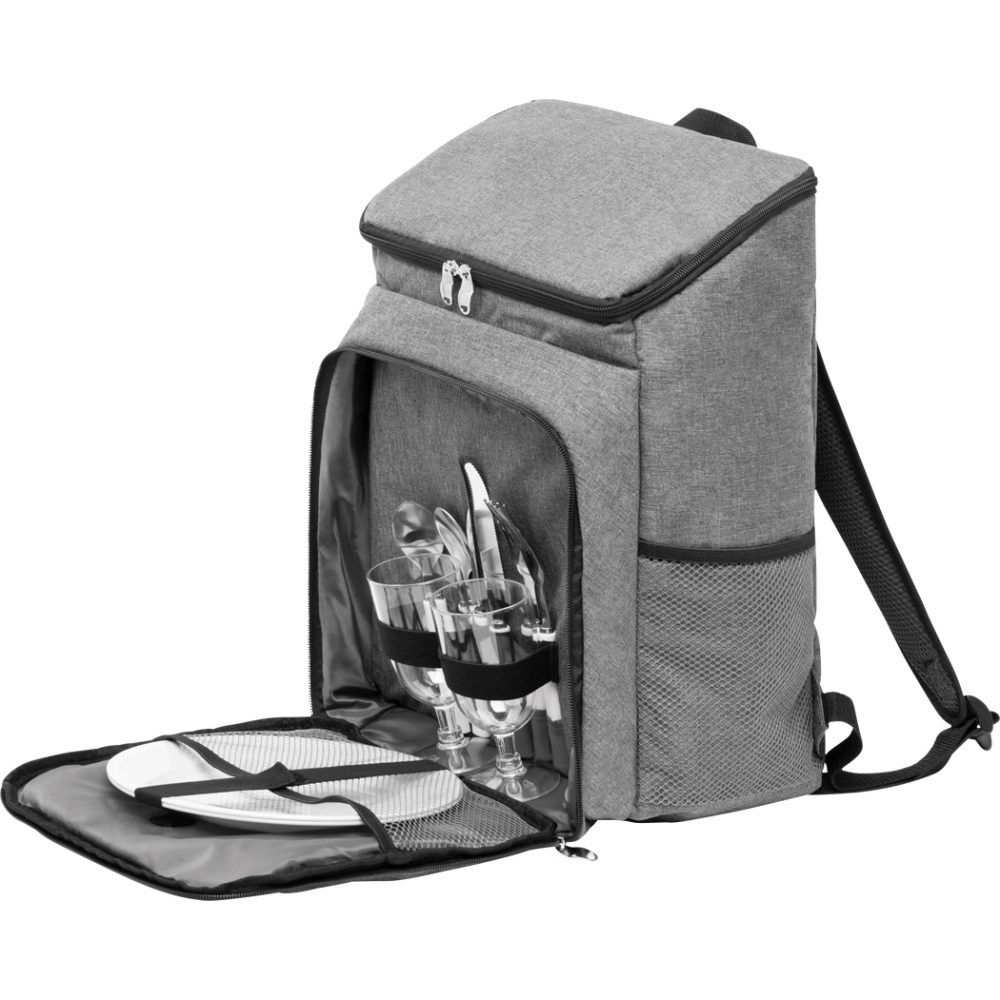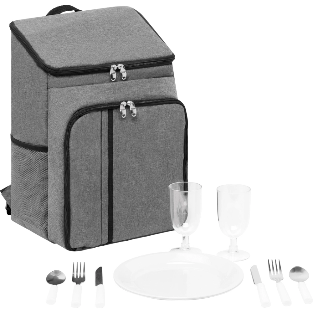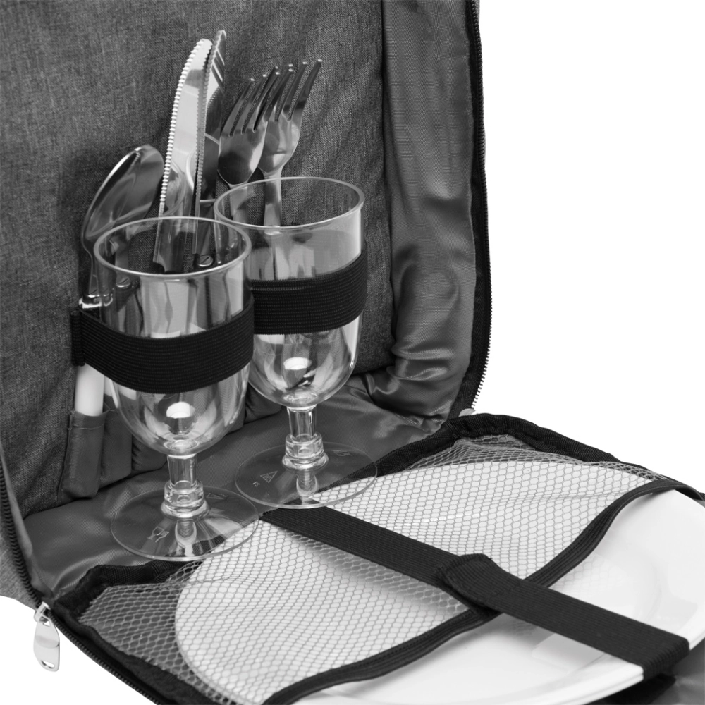Рюкзак для пикника LEISURE DAY на 2 человека, с изолированным основным карманом, передний карман на молнии содержит столовые приборы, пластиковую посуду и пластиковые бокалы для вина, 2 сетчатых кармана по бокам, ручка для переноски и мягкие плечевые ремни