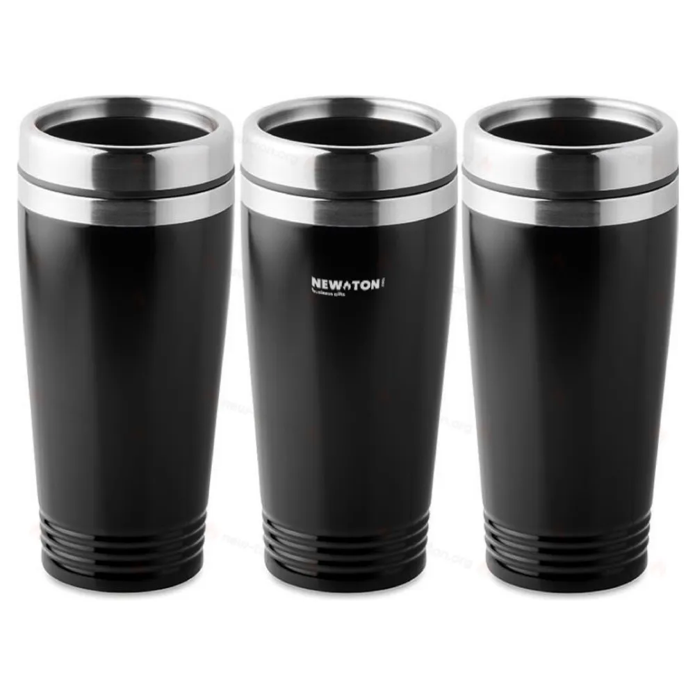 Термокружка дорожная двустенчатая. Колба из нержавеющей стали с черной крышкой из полипропилена. Емкость: 400 мл.