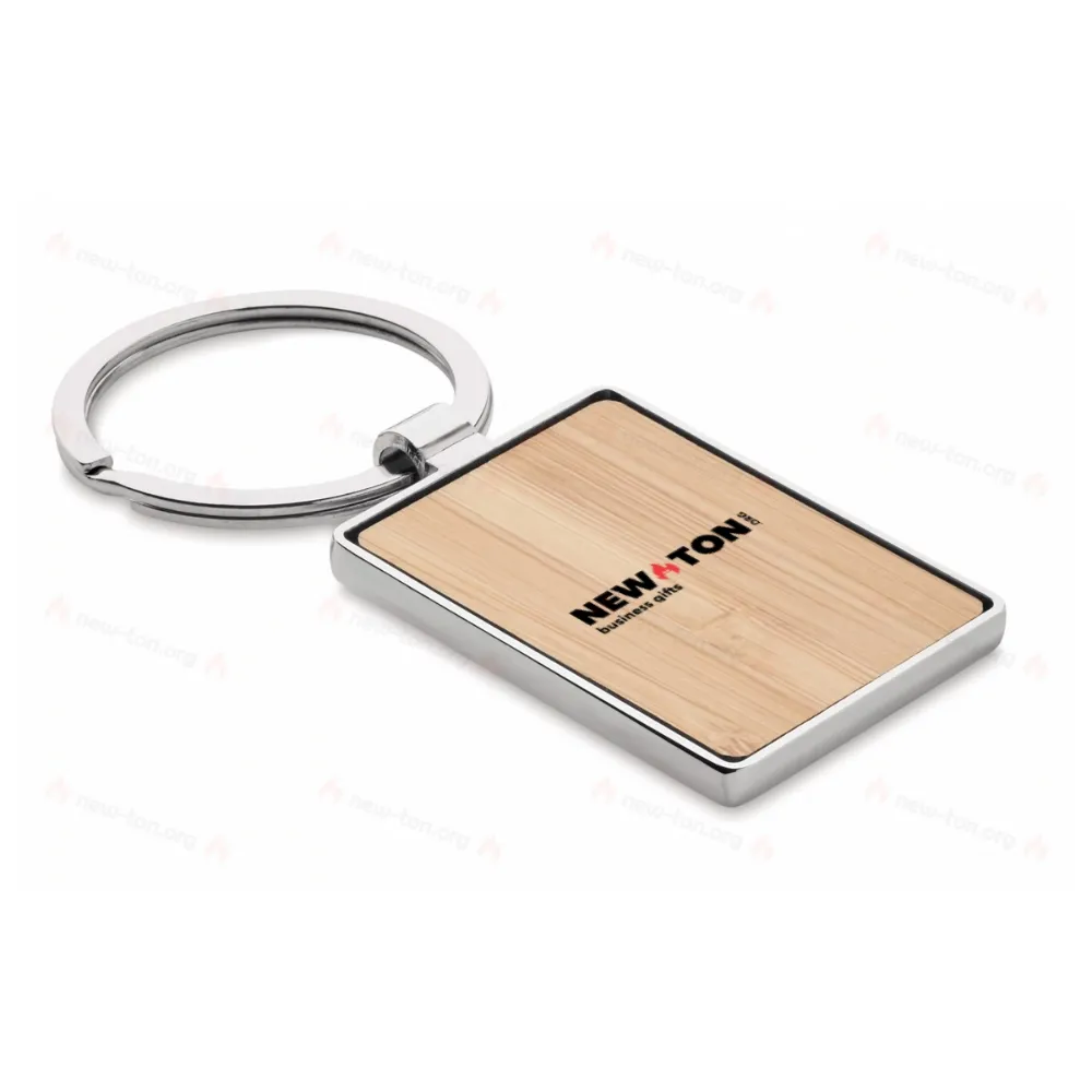 Брелок для ключей из цинкового сплава прямоугольной формы с бамбуковой лицевой стороной. Бамбук является натуральным продуктом, могут быть небольшие различия в цвете