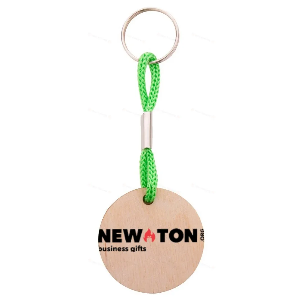 Брелок для ключей круглой формы из березовой фанеры с цветной полиэфирной нитью и полноцветной печатью. В стоимость входит УФ-светодиодная печать на одной стороне. MOQ: 200 шт.