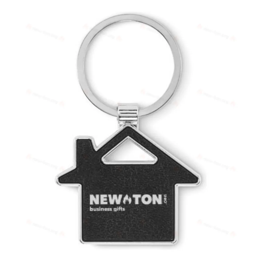 Металлический брелок в форме домика со вставкой из полиуретана.