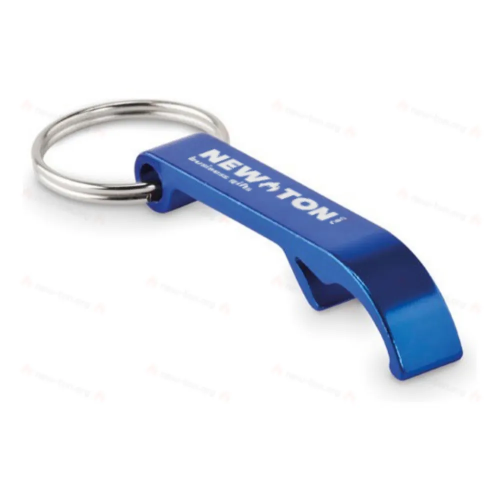 Открывалка для бутылок и брелок для ключей из переработанного алюминия с блестящей отделкой.